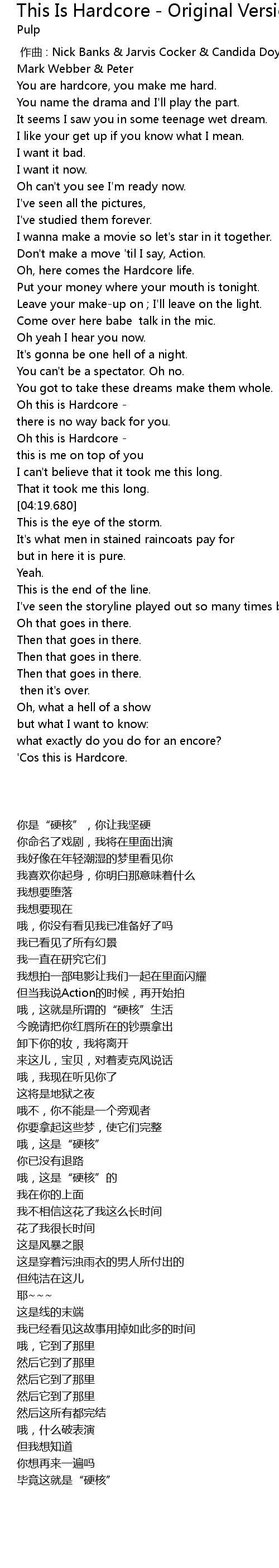 | 歌曲 | This Is Hardcore - Original Version |