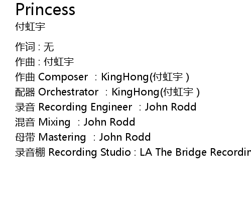 | 作曲 Composer :KingHong(付虹宇) | |
