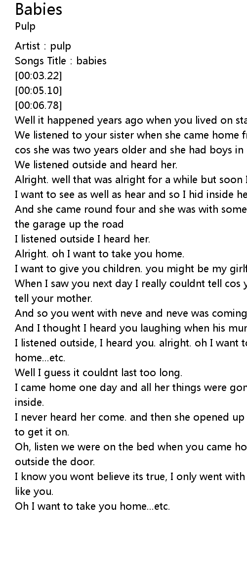 | [02:13.21] | I listened outside, I heard you. alright. oh I want to take you home... etc. |
