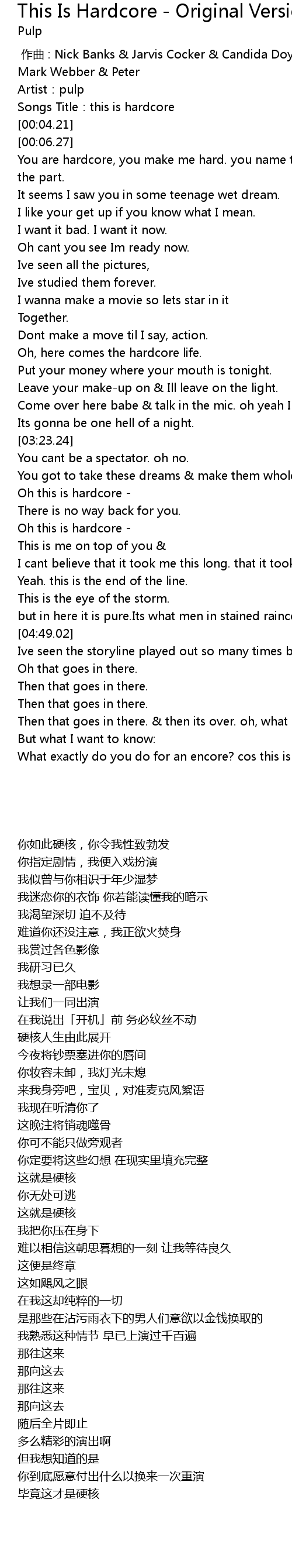 | [00:02.21] | Songs Title:this is hardcore |