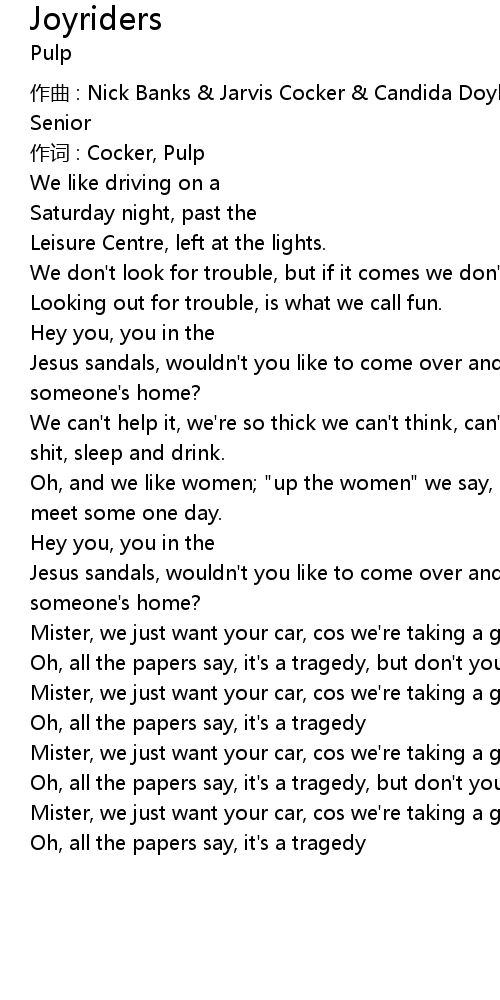 | 作词 : Cocker, Pulp | |
