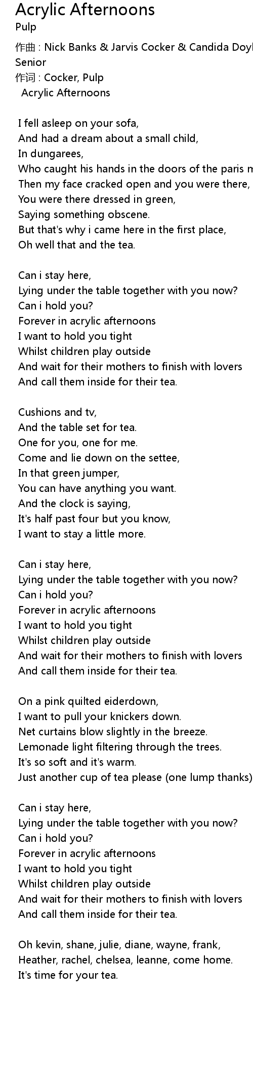 | 作曲 : Nick Banks & Jarvis Cocker & Candida Doyle & Steve Mackey & Russell Senior | |