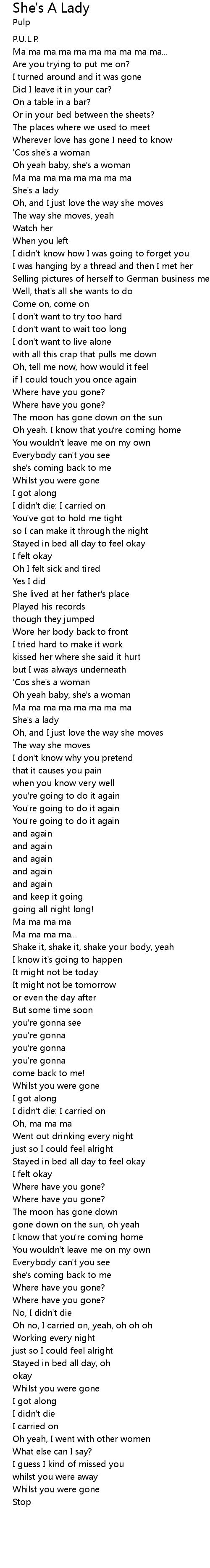 Oh yeah baby, she's a woman |