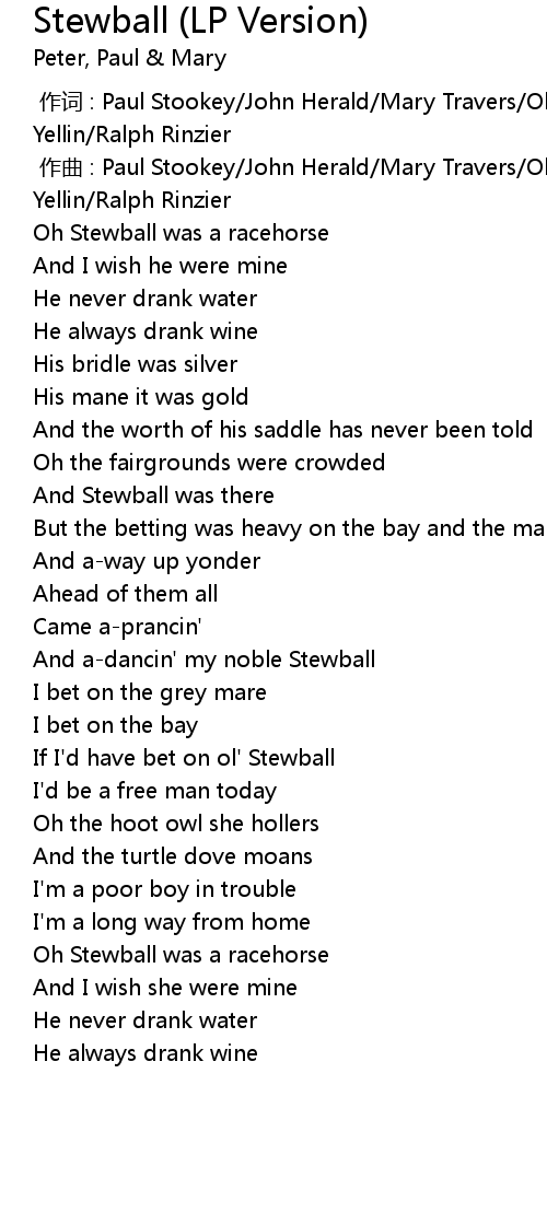 | [02:37.46] | Oh Stewball was a racehorse |