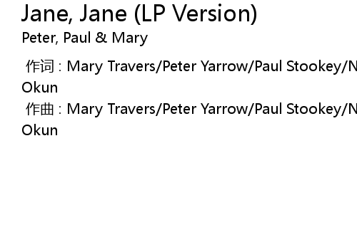 | 歌曲 | Jane, Jane (LP Version) |