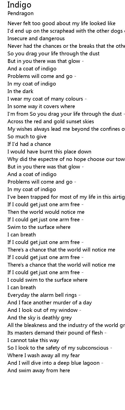 | In my coat of indigo | |