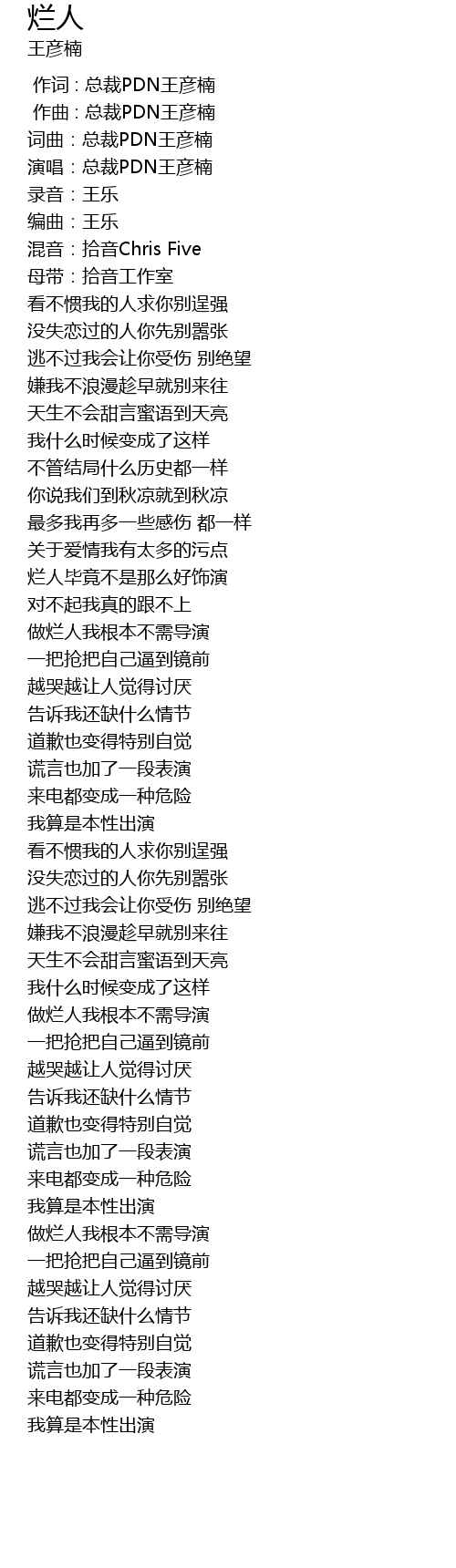 | [00:01.000] | 作曲 : 总裁PDN王彦楠 |