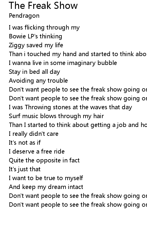 | Don't want people to see the freak show going on inside on me | |