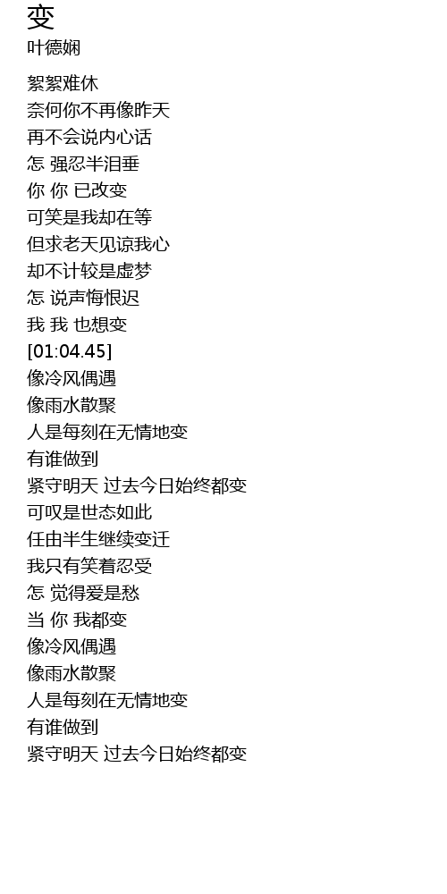 | [01:19.75] | rén shì měi kè zài wú qíng dì biàn |