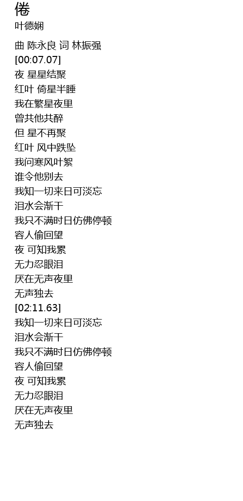 | [00:27.39] | 红叶 倚星半睡 |