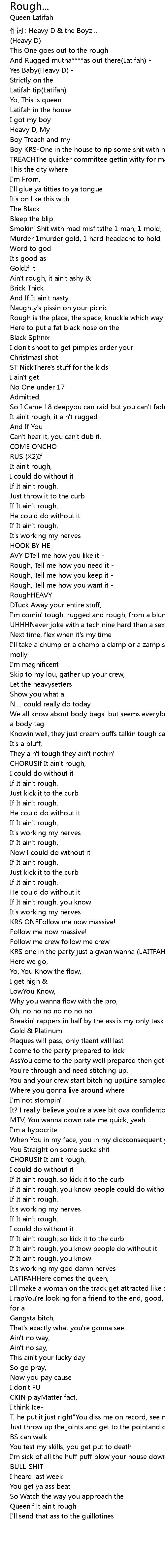 | I' m comin' tough, rugged and rough, from a blunt, take puff | |