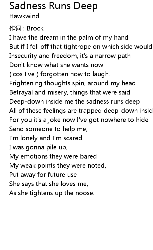 | Deep-down inside me the sadness runs deep | |