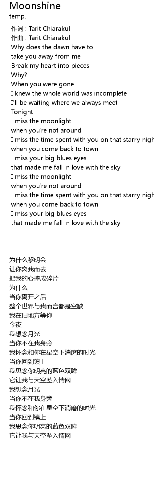 | [00:00.000] | 作词 : Tarit Chiarakul |