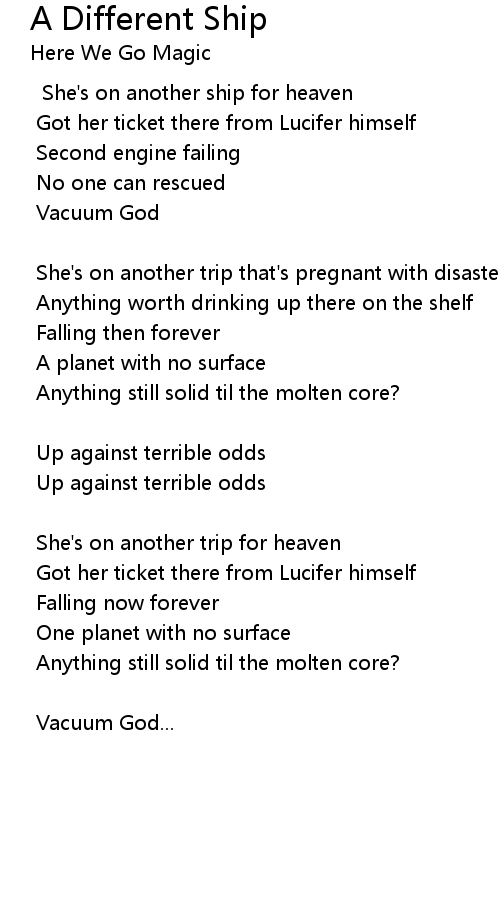 She's on another ship for heaven |