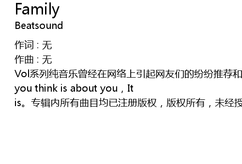 | Vol系列纯音乐曾经在网络上引起网友们的纷纷推荐和好评,这一次Beatsound又将这张珍藏多年的《Vol.4》发布至此,If you think is about you,It is。专辑内所有曲目均已注册版权,版权所有,未经授权禁止使用,如有使用需求请联系本人。 |
