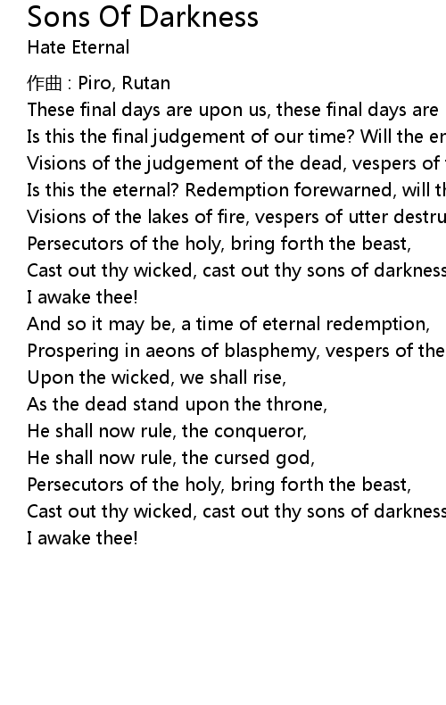 | 歌曲 | Sons Of Darkness |