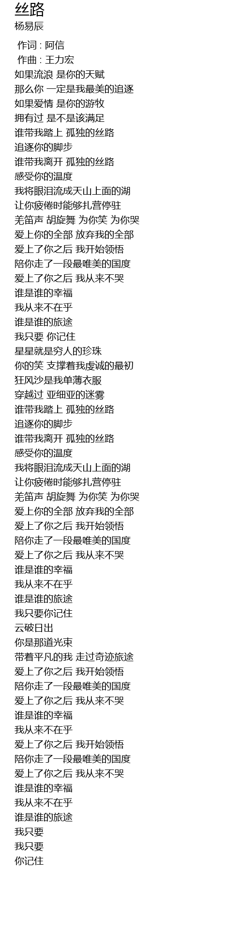 | [02:26.895] | 谁带我离开 孤独的丝路 |