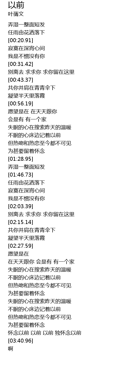| [03:24.04] | 怀念以前 以前 以前 独怀念以前 |