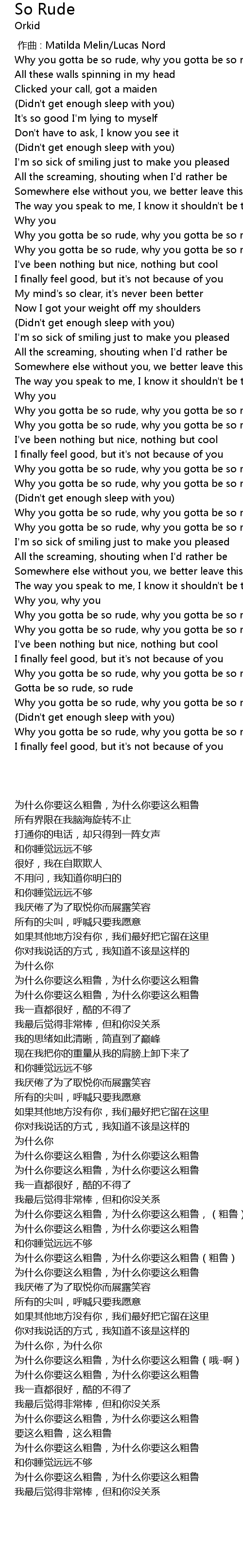 | [02:18.21] | Why you gotta be so rude, why you gotta be so rude Ohah |