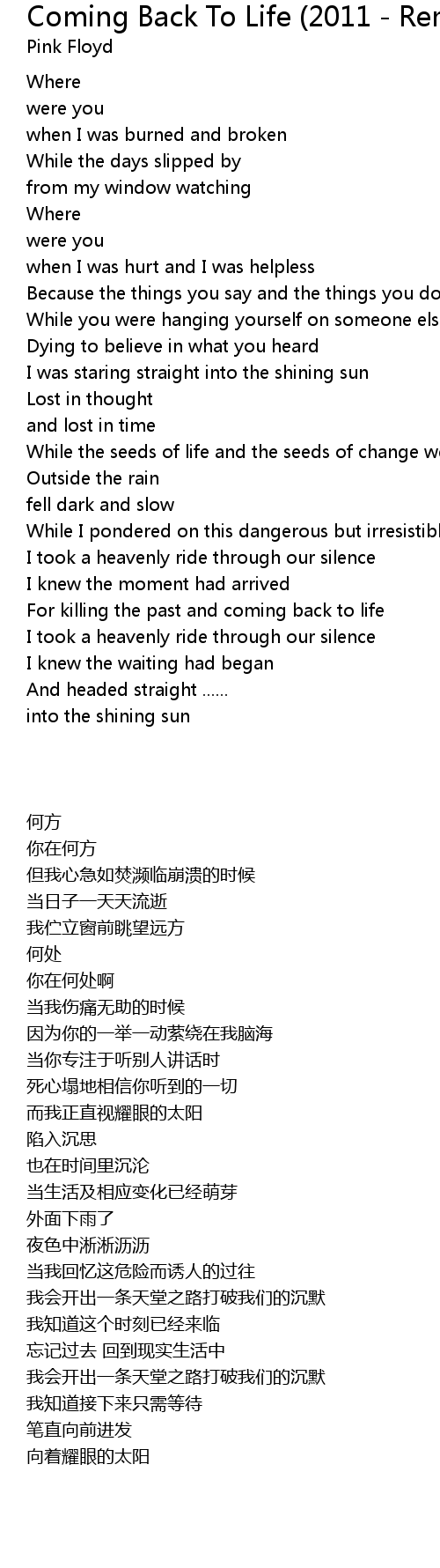 For killing the past and coming back to life |