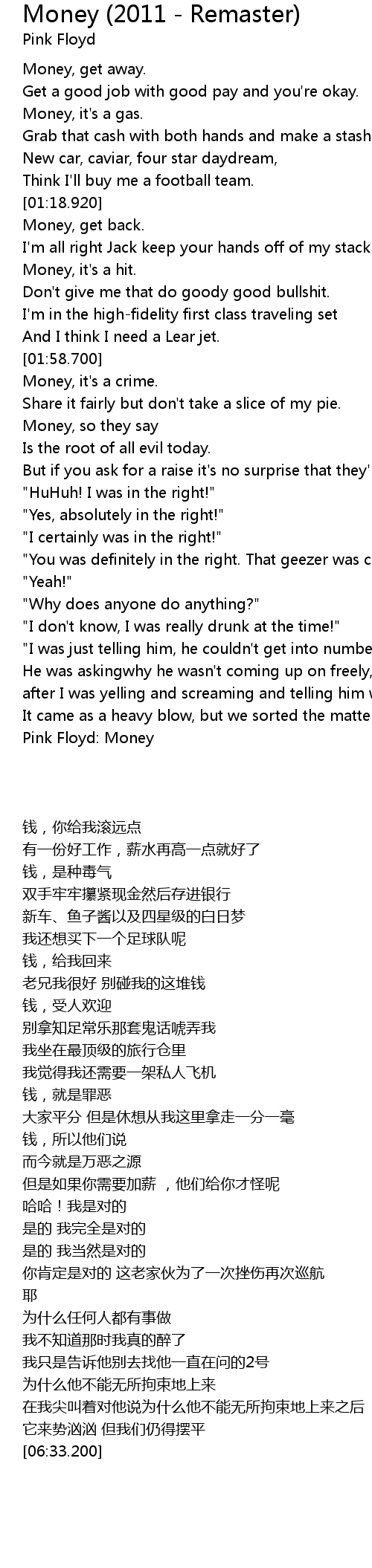 | [01:01.100] | Grab that cash with both hands and make a stash. |