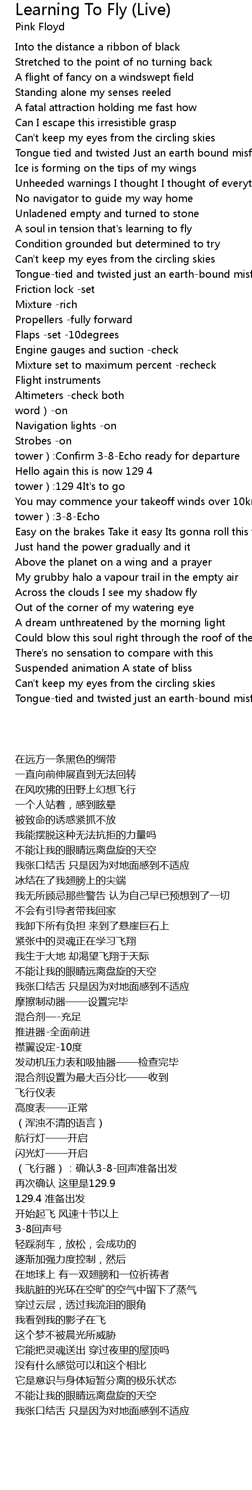 | 歌曲 | Learning To Fly (Live) |