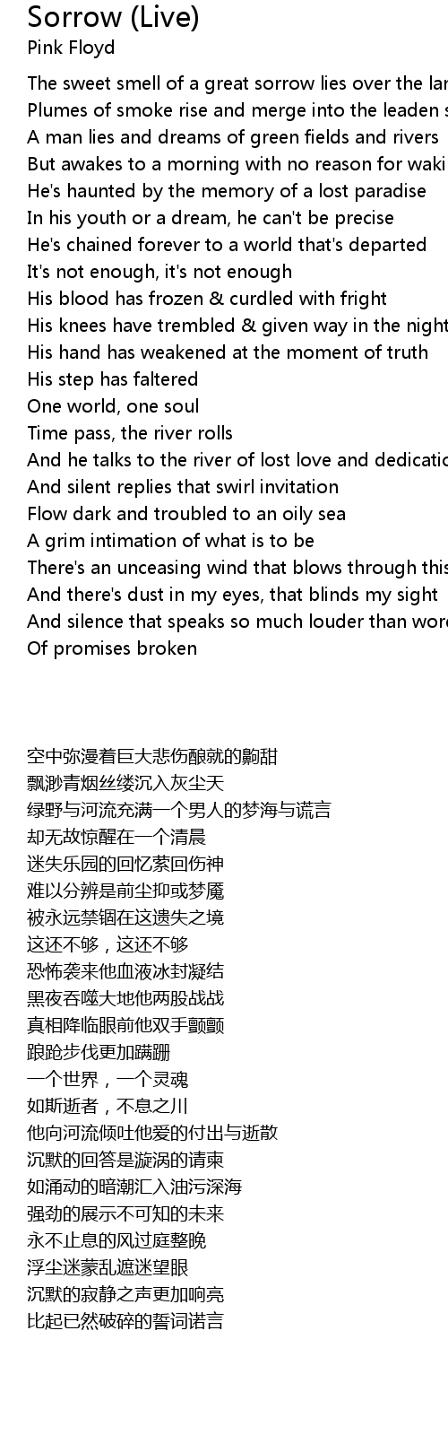 The sweet smell of a great sorrow lies over the land |