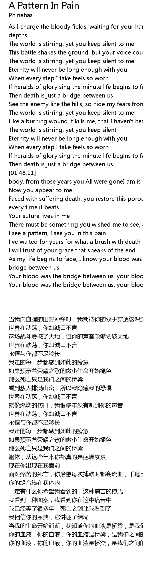 As my life begins to fade, I know your blood was the bridge, the bridge between us |