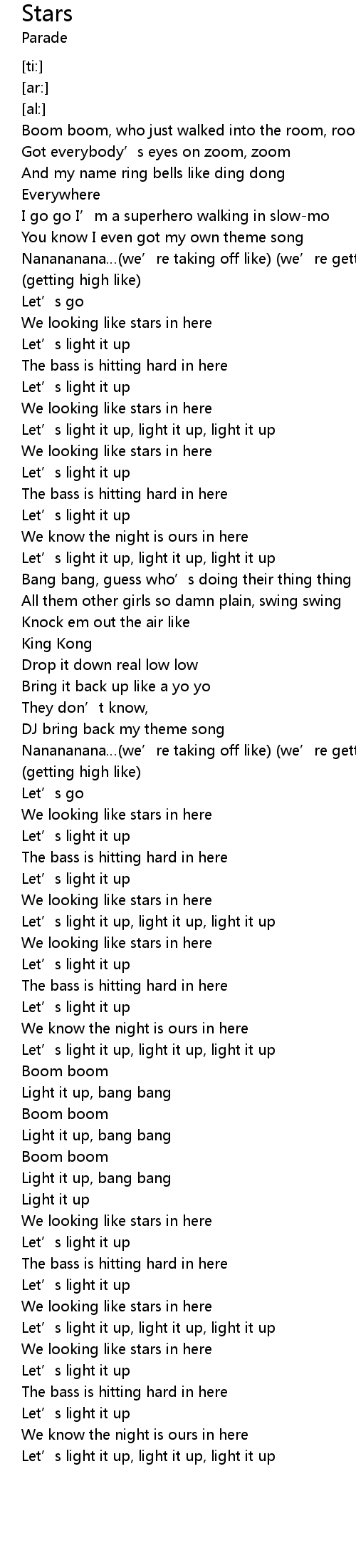 | [00:55.75] | Let' s light it up, light it up, light it up |