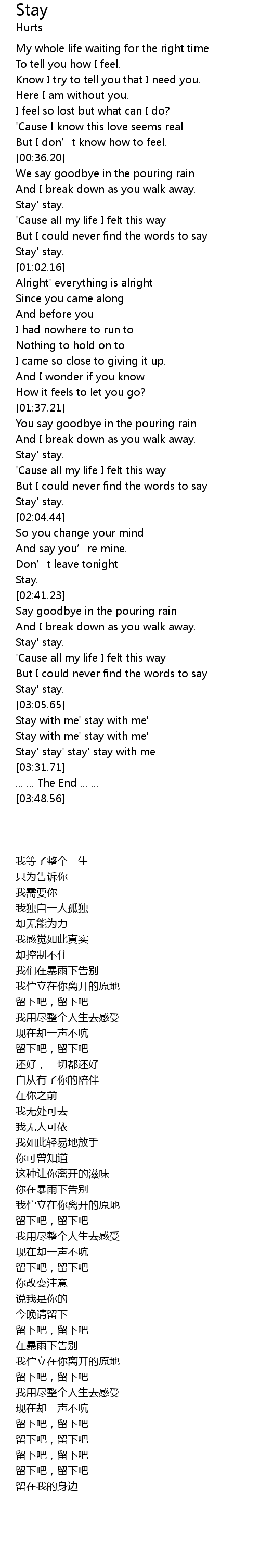 | [03:19.64] | Stay' stay' stay' stay with me |