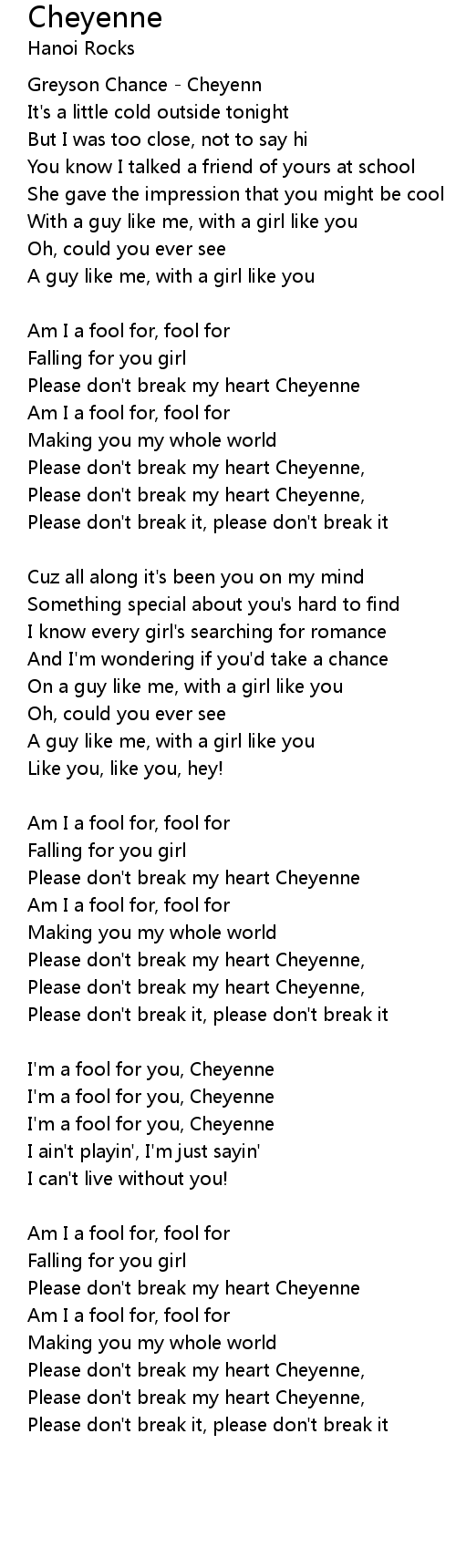 Please don't break my heart Cheyenne, |