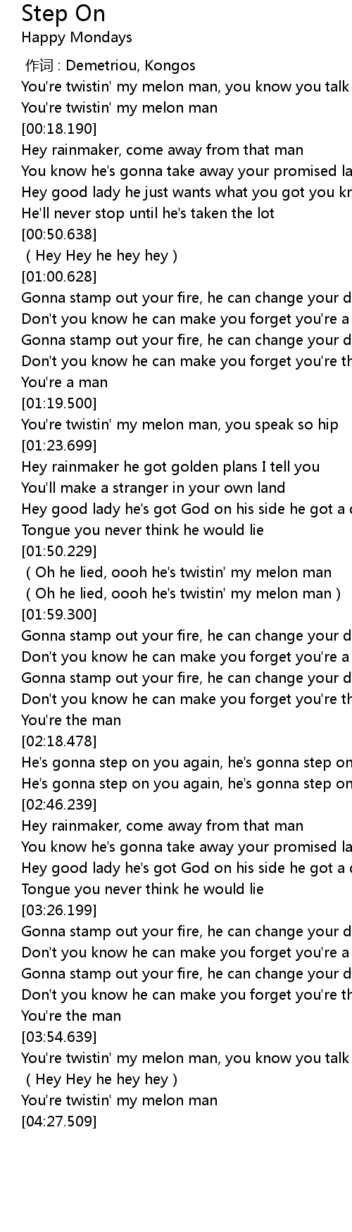 | [02:31.209] | He's gonna step on you again, he's gonna step on you |