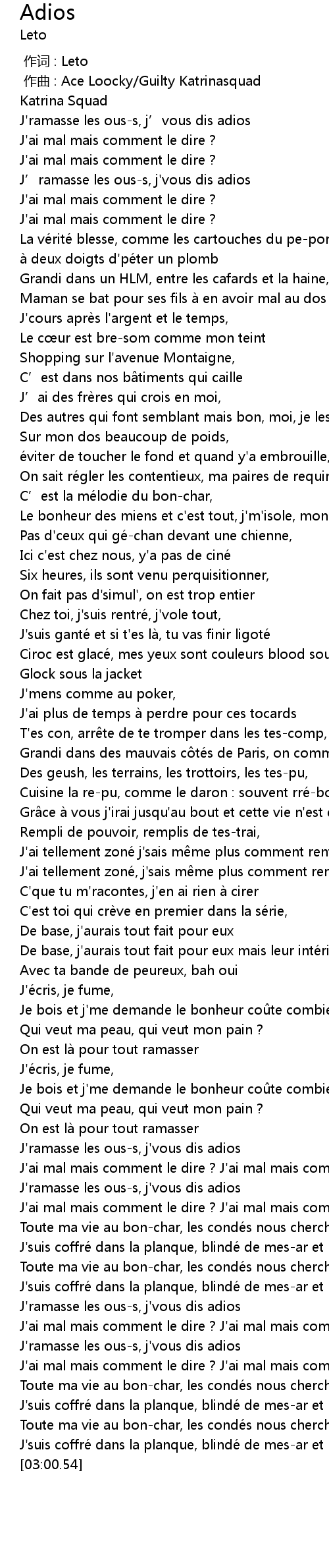 | [02:37.96] | J' ramasse les ouss, j' vous dis adios |