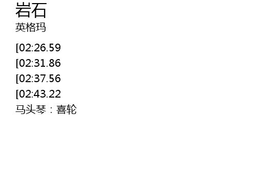 | [02:54.57][02:31.86][01:41.35][01:18.86][00:53.55][00:31.13] | 岩石虽然硬 |