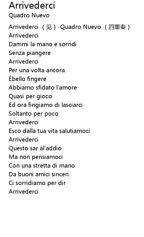 | [00:00.00] | Arrivederci jiàn Quadro Nuevo sì chóng zòu |