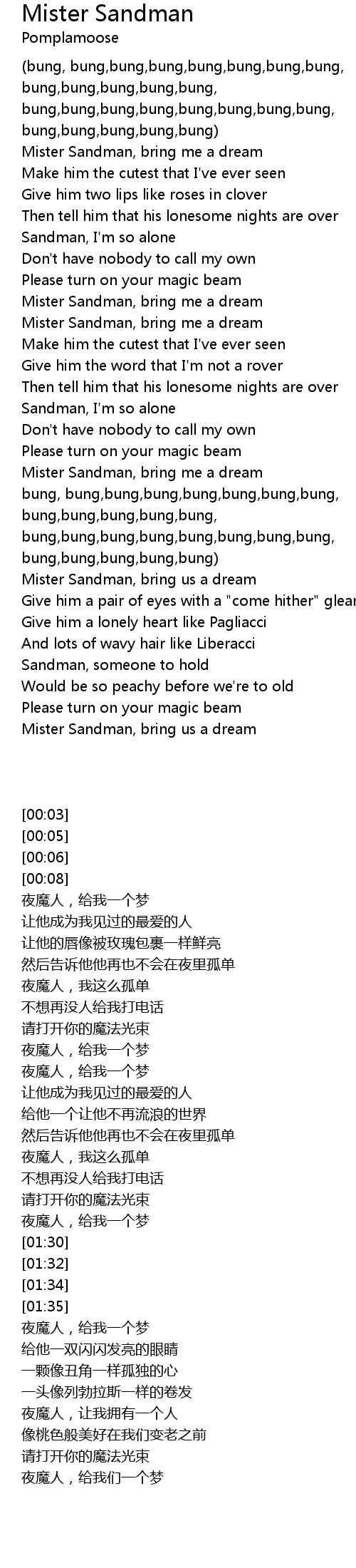 Mister Sandman, bring us a dream |