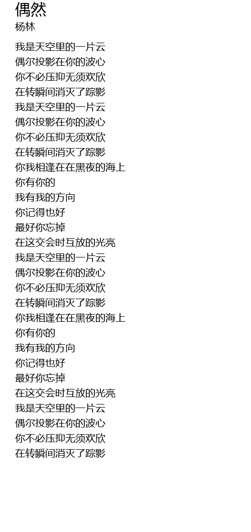 | [00:55.789] | wo shi tian kong li de yi pian yun |