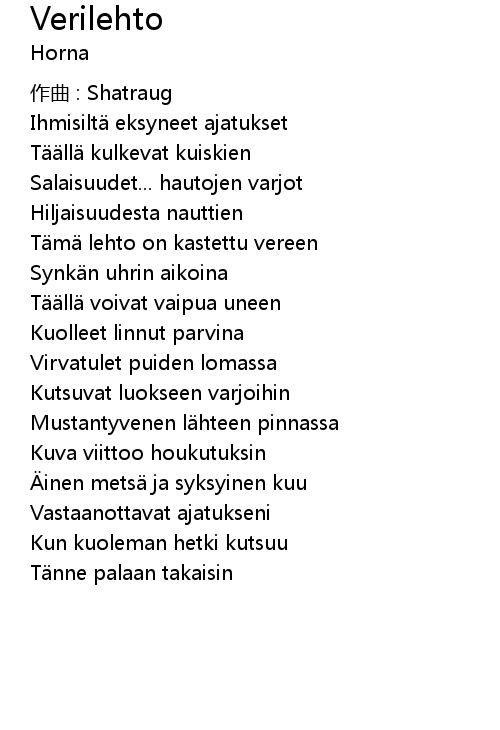 | 歌曲 | Verilehto |