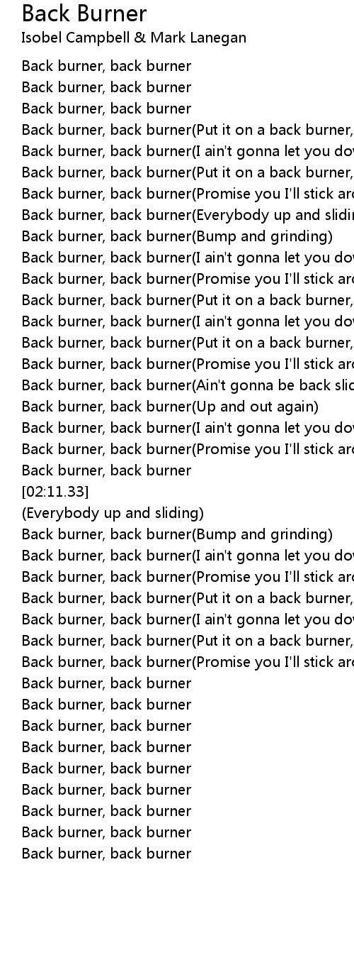 Back burner, back burner(Promise you I'll stick around) |