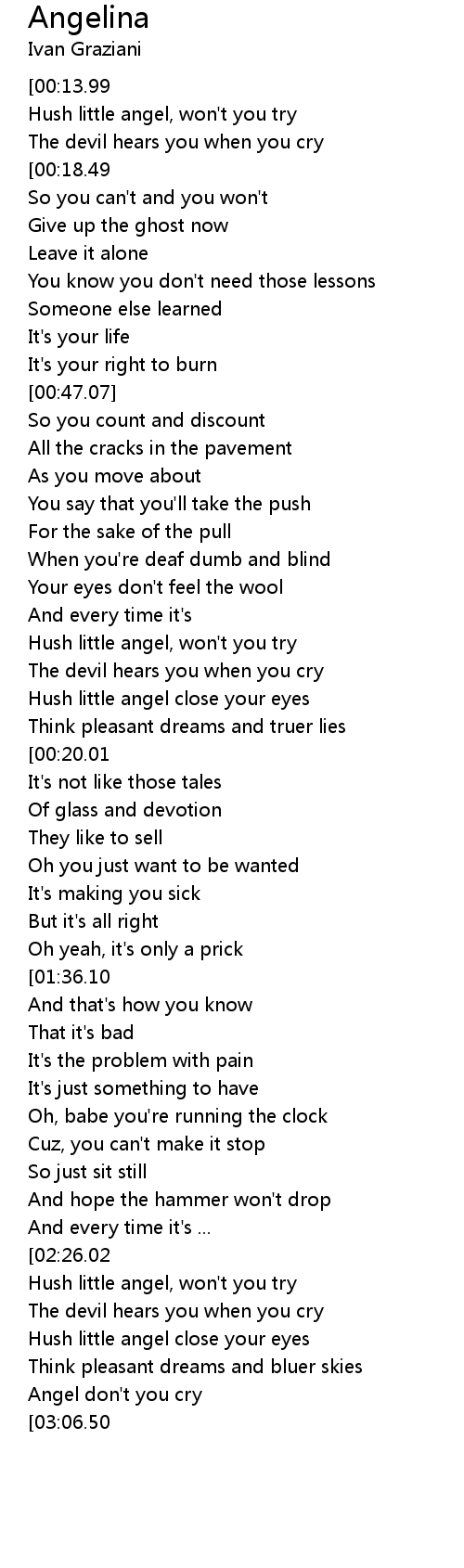 | [00:00.00] | Hush little angel, won't you try |
