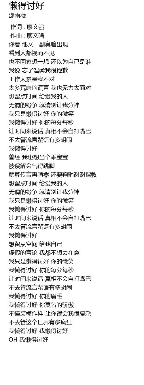 | [03:08.42] | 我懒得讨好 我懒得讨好 |