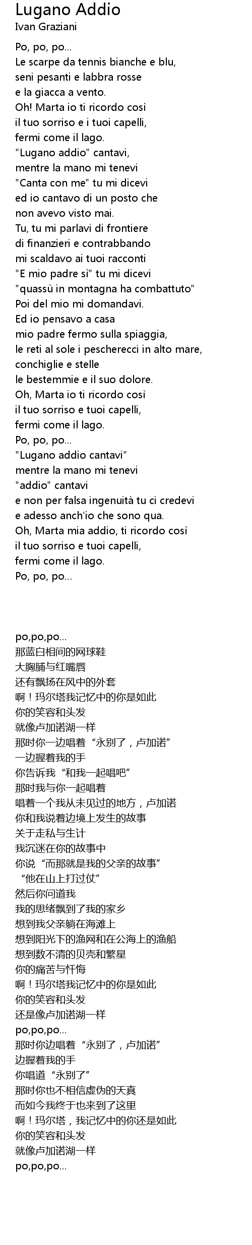 | [01:10.883] | 那时你一边唱着“永别了,卢加诺” |