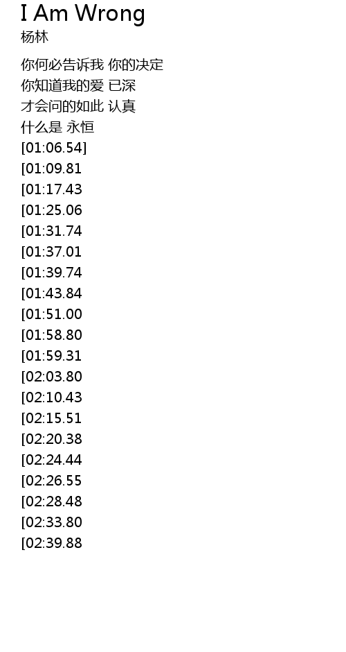 | [04:20.26][02:15.51] | I' M WRONG I' M WRONG |