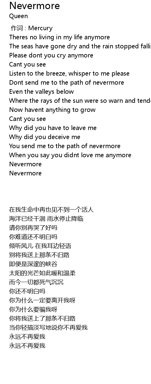 | [00:48.43] | You send me to the path of nevermore |