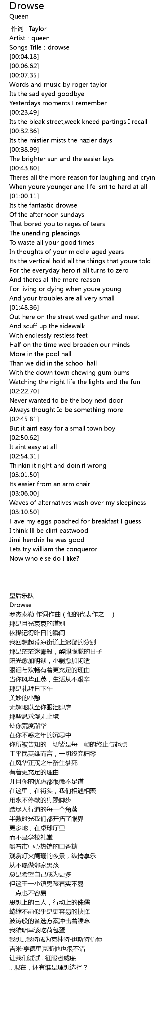 | [00:15.72] | 罗杰泰勒 作词作曲(他的代表作之一) |
