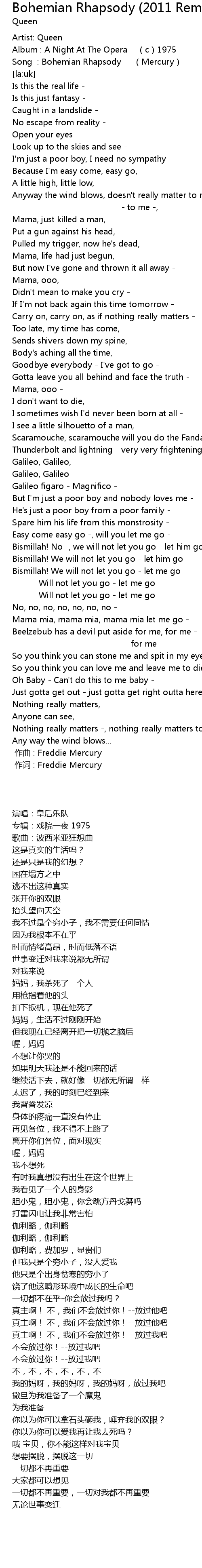 | [00:00] | Song : Bohemian Rhapsody Mercury |
