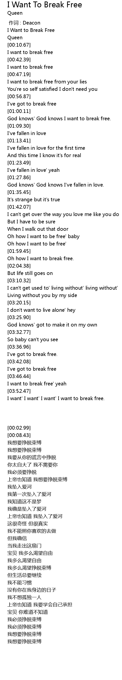 | [03:58.39] | I want' I want' I want' I want to break free. |