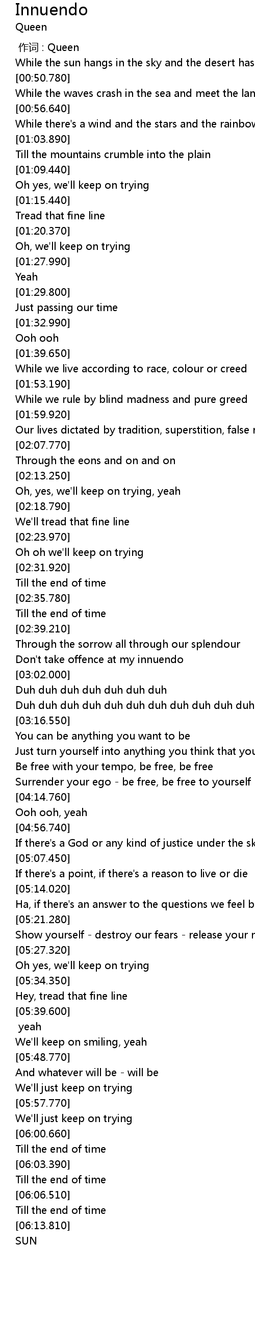 | [00:00.00] | 作词 : Queen |