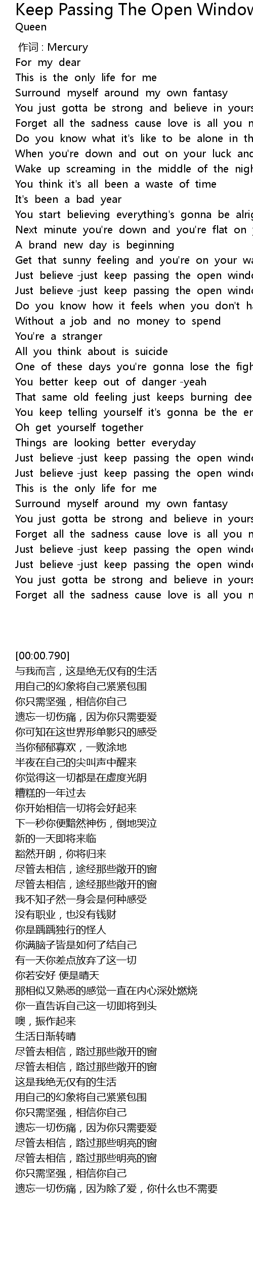 | [01:32.913] | Just believe -just keep passing the open windows |