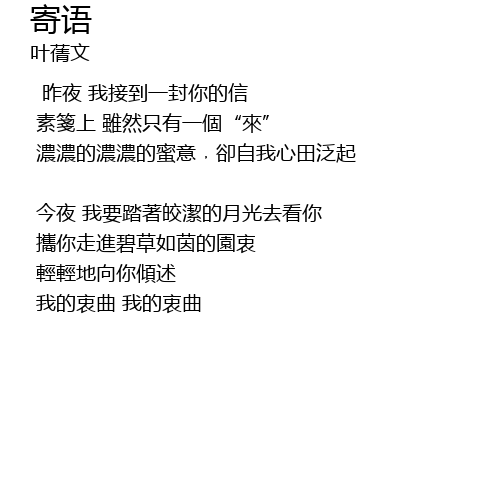 | jīn yè wǒ yào tà zhe jiǎo jié de yuè guāng qù kàn nǐ | |